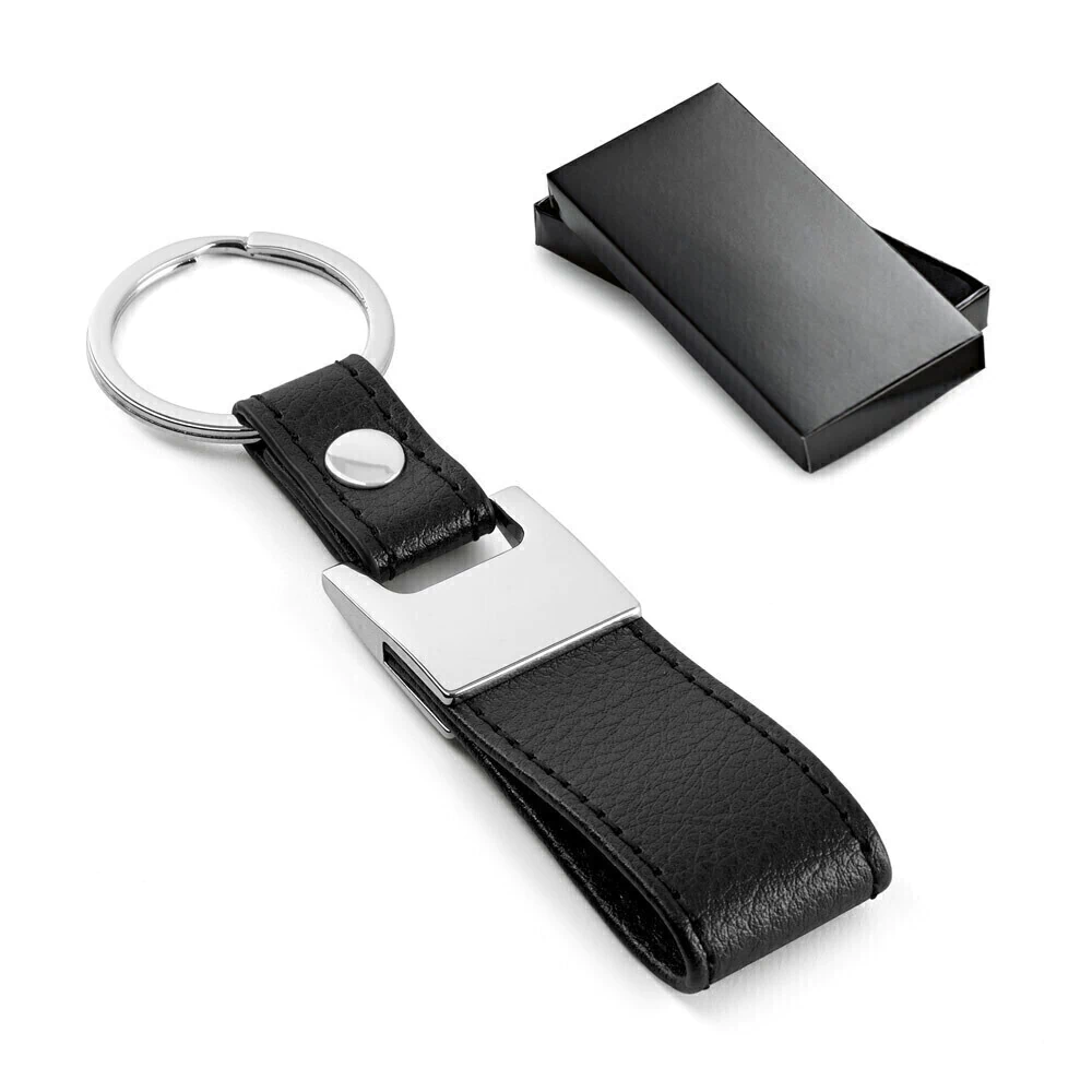 93353 - Chaveiro em metal e c. sintético. Fornecido em caixa presente. Cor: preto. Medida: 100mm x 21mm x 11mm. Personalização laser 1 posição.